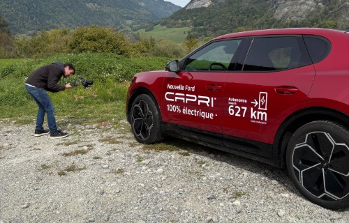 Passons maintenant à la conduite. Le modèle présenté ici est le Ford Capri Pack Premium Extended Range, équipé d’un moteur de 340 chevaux. Il offre une autonomie pouvant atteindre 560 km, variable bien sûr selon différents facteurs. Dans des conditions optimales, il est tout à fait envisageable de relier Chambéry à Perpignan avec une seule charge.